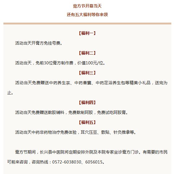 长兴县中医院门诊时间调整|11月7日,膏方节来了