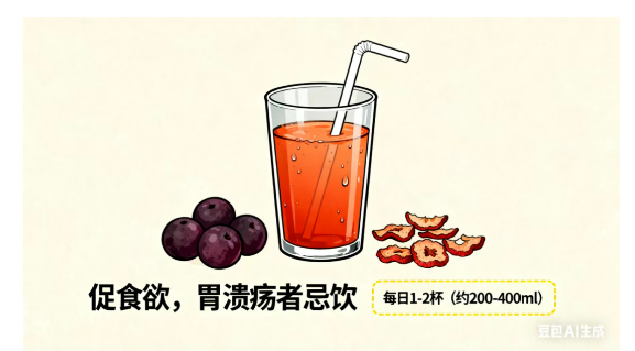 乌梅、山楂等制成,可促食欲、解油腻。胃溃疡患者、糖尿病人、孕妇忌饮,过量易引发肠胃不适,需适量饮用。把酸梅汤中夏季清热的药物,替换成秋冬季节养脾胃的药物,就可以得到一碗适合秋冬季节养生的酸梅汤!