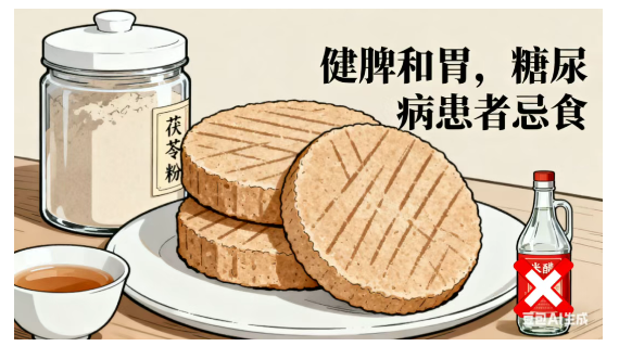茯苓加工制成,能健脾和胃、利水渗湿,适合脾虚水肿、久泻者,可促消化、增免疫力。市面产品含糖高,糖尿病患者忌食;不宜与浓茶、米醋同食,建议自制控糖。